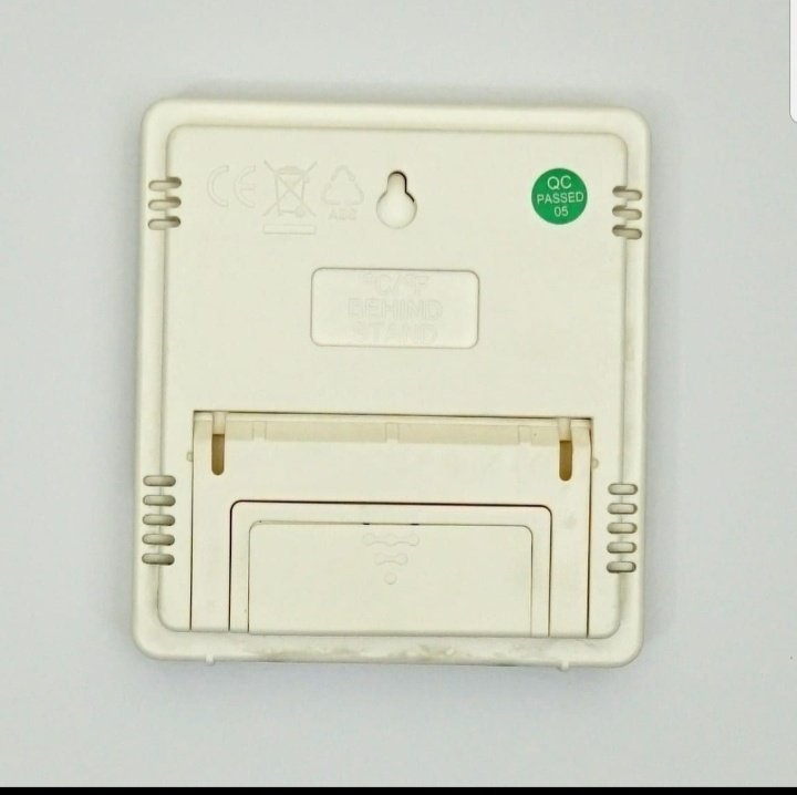 Tells Temperature Humidity Time Alarm can be set.